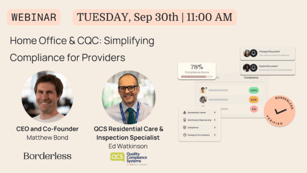 Navigating both Home Office sponsorship rules and CQC standards can be complex, and costly if you get it wrong. That’s why we teamed up with Borderless to host a free webinar.